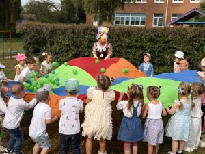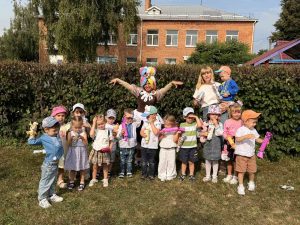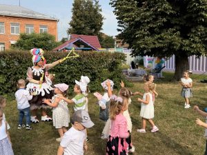 Мета: Викликати у дітей радісні емоції, бажання йти в садочок. Формувати уявлення про дитячий садок як «країну знань і друзів». Розвивати комунікативні навички, уміння брати участь у спільних іграх та святах.